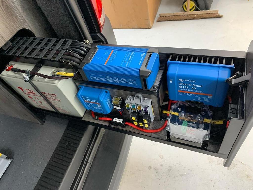 Штатні свинцево-кислотні акумулятори швидко втрачали ємність, через що холодильник вимикався вночі, а використання звичайного електрочайника чи фену було неможливим без підключення до кемпінгової розетки (220В). Перед сімейною поїздкою до Греції було поставлено завдання: забезпечити роботу потужних побутових приладів та реалізувати швидку зарядку під час руху.